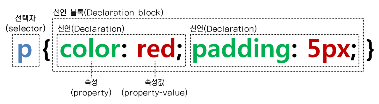 선택자란 말 그대로 선택을 해주는 요소입니다. 이를 통해 특정 요소들을 선택하여 스타일을 적용할 수 있게 됩니다. 먼저 CSS에서 스타일이 어떤 방식으로 정의되는지 알아봅시다.