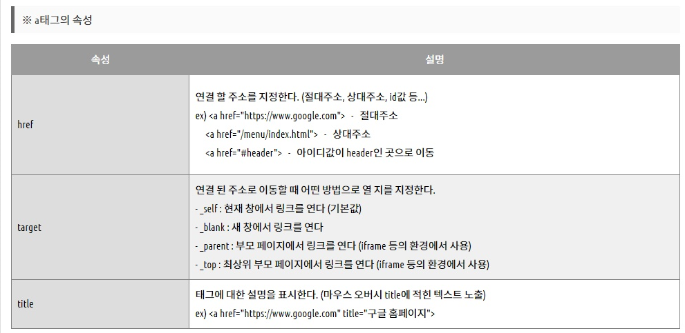 위의 같은 페이지 안에서 이동할 때와 다른 점은 사이트나 페이지의 주소(URL)를 함께 적어 주는 것 뿐이다.