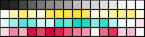 위의 보시면 검은색부분도 그냥 검은색이 있는가 하면, 하얀 배경에 닿는 부분에서 조금 밝은 검은색들도 보입니다. 빨간 색 역시 마찬가지이고요. 저런 부분들이 다 색상입니다. 아래는 이 이미지에 들어간 색상 팔레트 입니다.