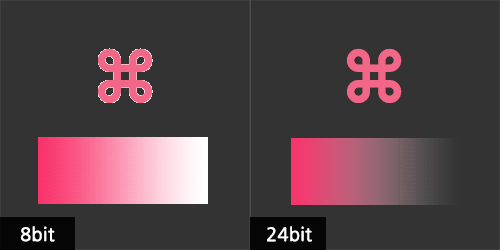 PNG 24비트 : 8비트 보다 더 높은 배수이기 때문에 더 많은 이미지 정보를 담는 포맷입니다. 때문에 이 24비트 포맷은 256개의 색 제한이 아닌, 원본의 색을 다 저장합니다. 게다가 투명도 역시 지원을 하는데,