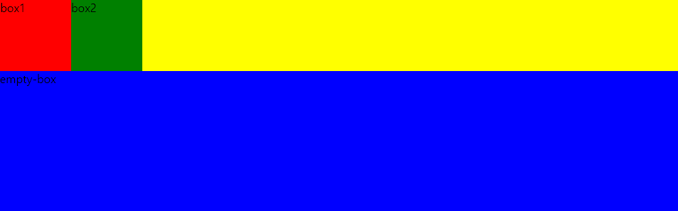 <!DOCTYPE html> float clear box1 box2 empty-box * { margin: 0; padding: 0; } .box-wrap { background-color: yellow; } .box1 { width: 100px; height: 100px; background-color: red; } .box2 { width: 100p..