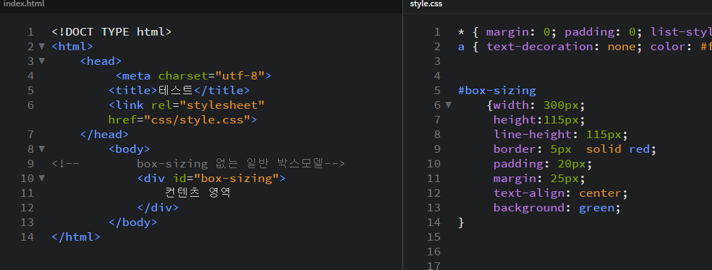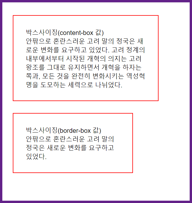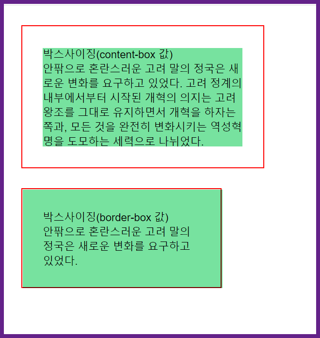 박스 두개의 값은 동일합니다. 박스 사이징에서 차이가 있다는 것~~