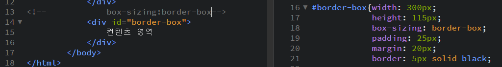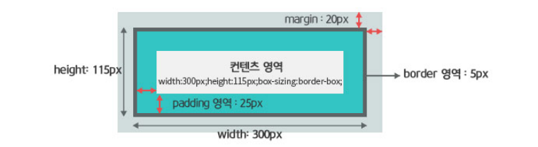 컨텐츠 박스에 width300px height115px값을 설정하고 border-box를 설정하게 되면
