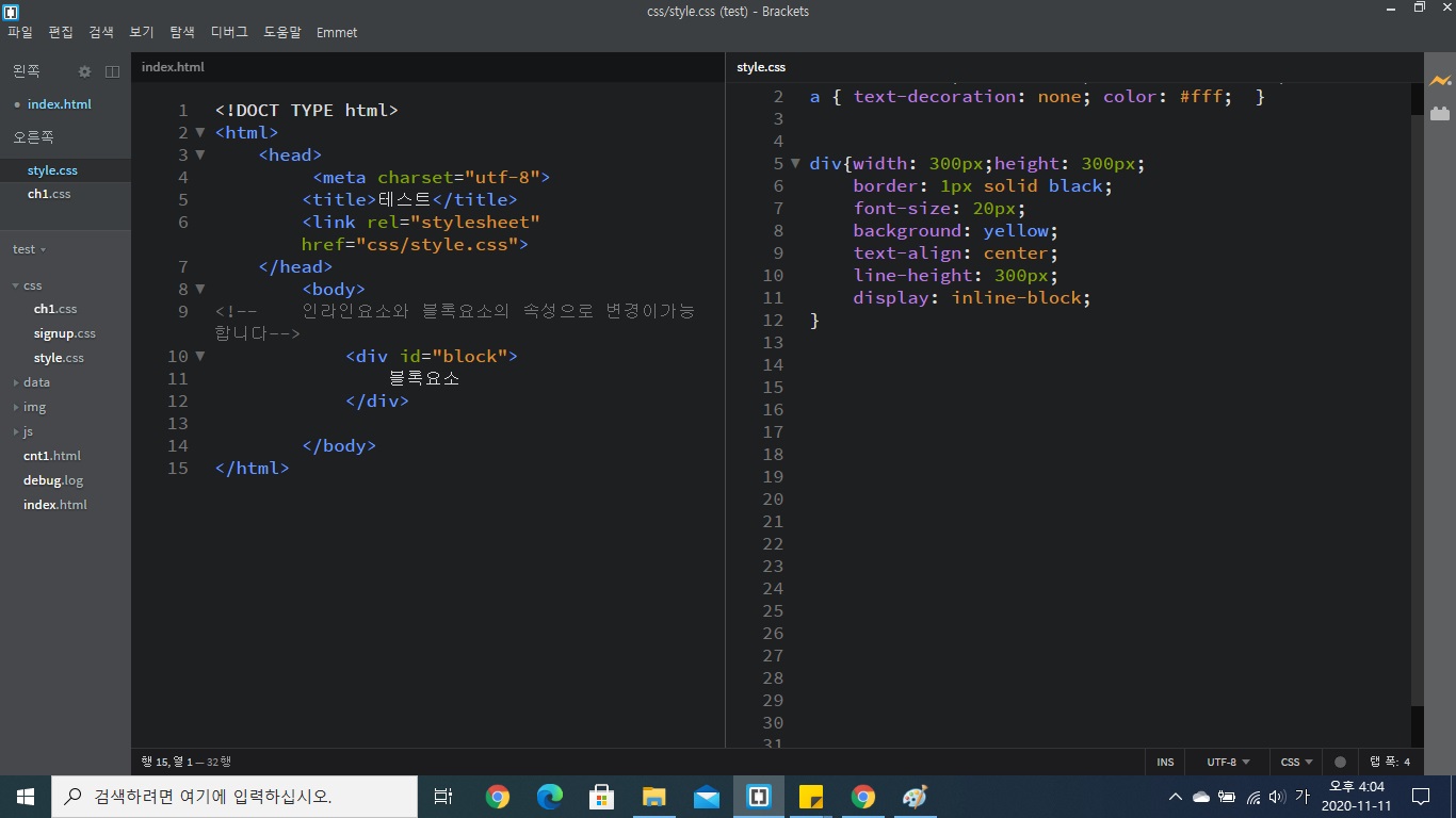 ※ display:block CSS명령어로 인라인 요소를 블록 요소의 속성으로 변경 할 수 있습니다. ※