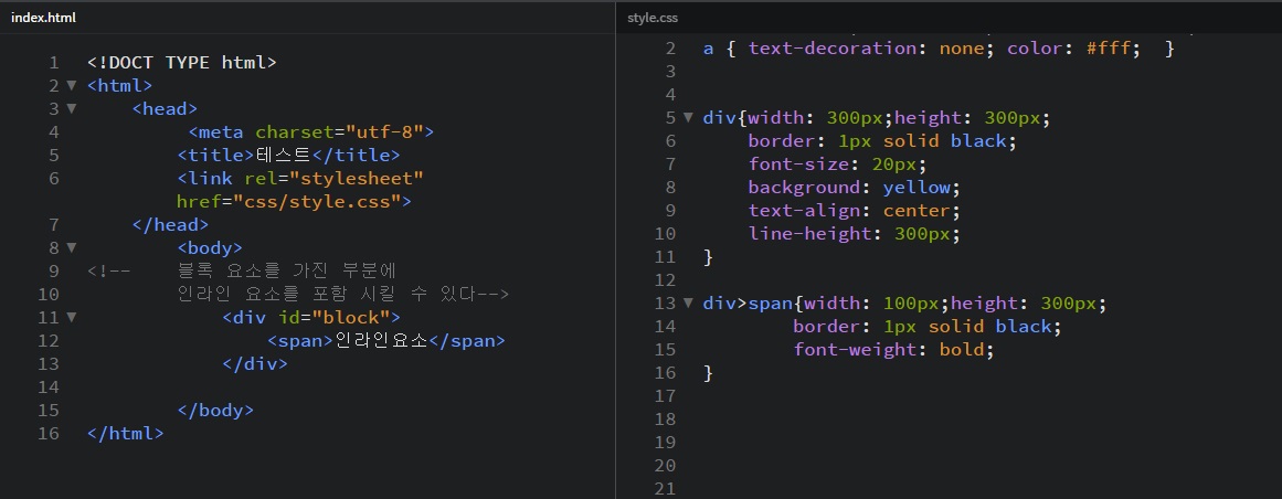 - 부모 block요소를 가진 부분에 인라인 요소를 포함시킬 수 있습니다.
