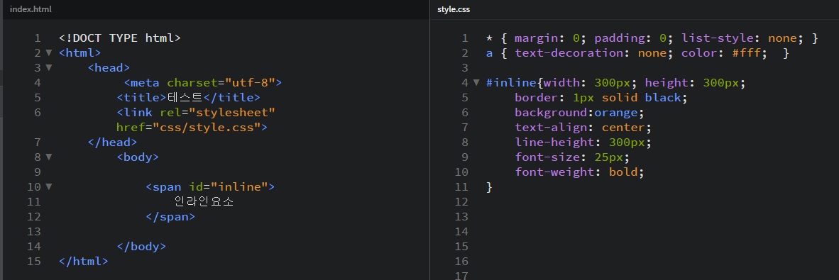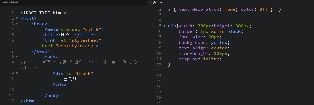 ※ display:inline CSS명령어로 블록 요소를 인라인 요소의 속성으로 변경할 수 있습니다. ※