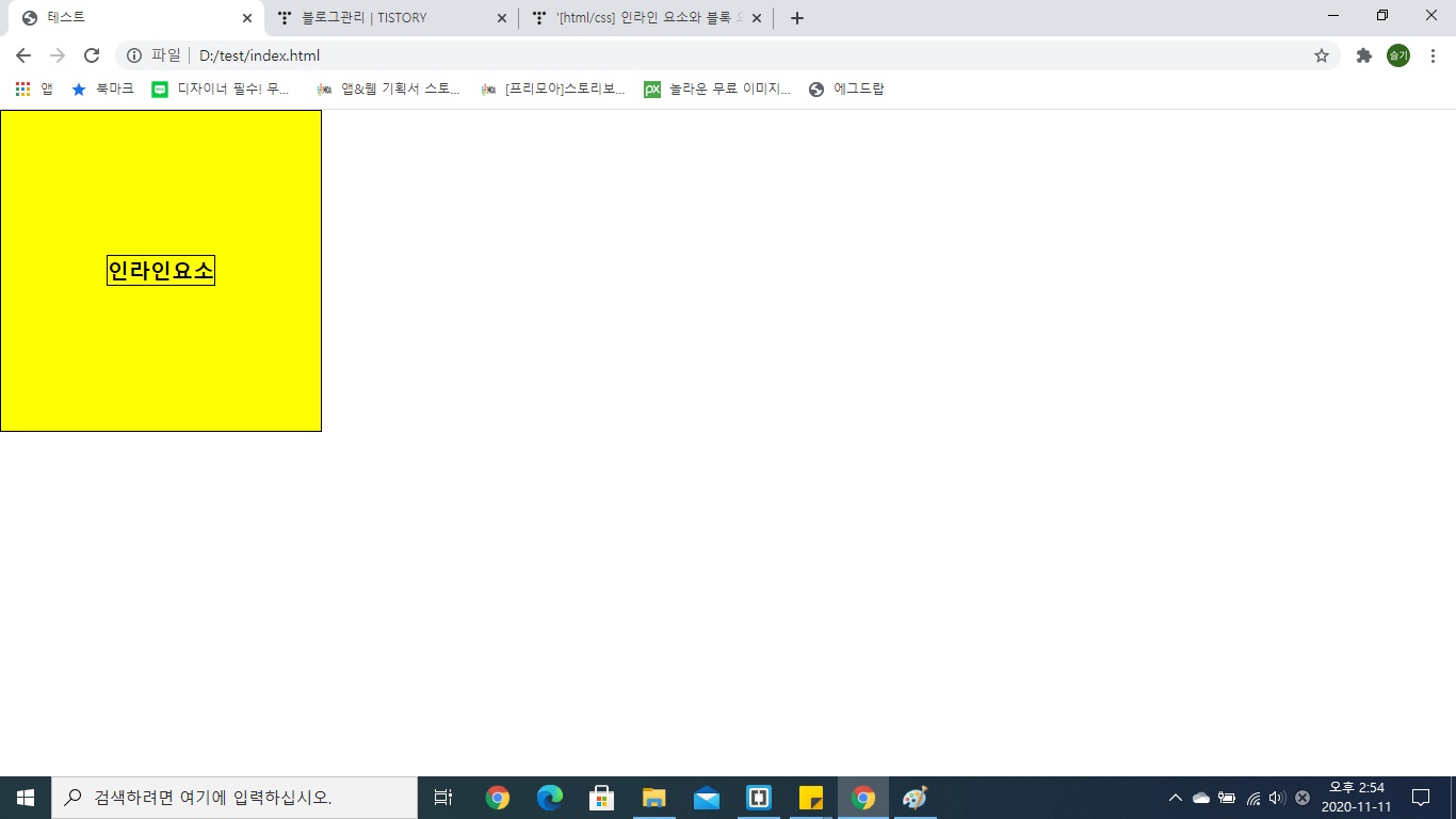 inline요소 : 콘텐츠의 넓이 만큼 공간을 차지 합니다(움직일 공간이 없는게 단점 입니다)