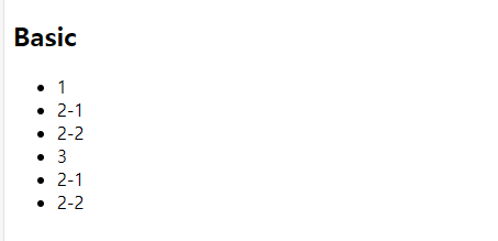 2. <li>2-1 </li> <li>2-2 </li>는 two() 함수를 이용해서 호출한다