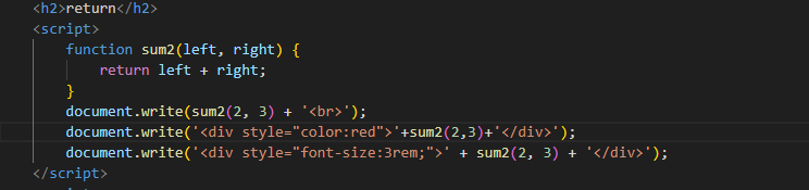 그리고 document.write()라는 함수는 JS를 문자열로 '리턴'하는 것, 숫자를 리턴하는 것이 아닙니다. 리턴값은 HTML로 보내지고, 다시 HTML로 랜더링 됩니다.