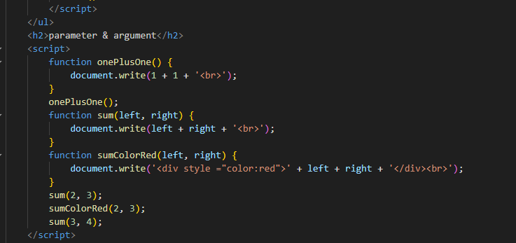 - document.write(1 + 1 + '<br>') 중괄호 안에 입력받고